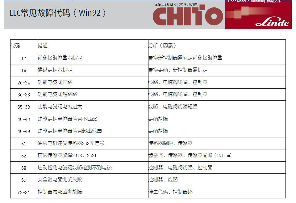 林德叉車R系列故障代碼