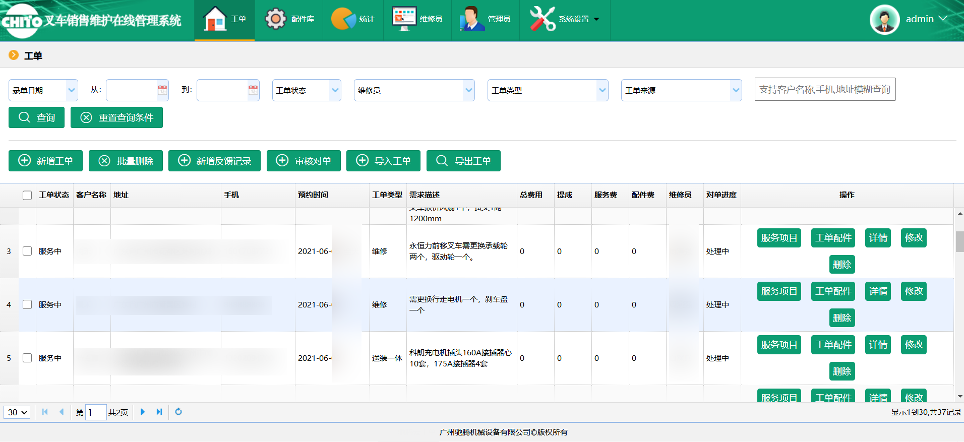 叉車銷售維修管理系統(tǒng),是我司針對客戶叉車設(shè)備銷售維護(hù)管理服務(wù)的完善舉措。